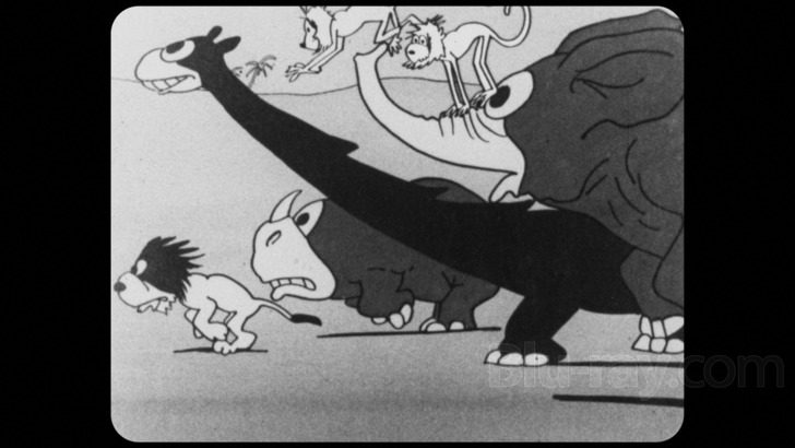 Aesop's Fables The 1920s Volume 1 is presented on Blu-ray courtesy of Cartoon Logic, Blackhawk Films and ClassicFlix with AVC encoded 1080p transfers in 1.33:1. The disc boots to an informational text card announcing that while some of the shorts are incomplete, Cartoon Logic has reconstructed them to the most extant versions available. As the "fine print" on the keepcase insert inner print discloses (along with several of the commentary tracks), there's a pretty wide variety of source elements that were utilized for this collection, including everything from 16mm prints to 35mm prints to 35mm fine grains to even an occasional 35mm original negative. As such, there is a concomitant variance in image quality throughout, though on the whole things look amazingly good for shorts that are in many cases over a century old and which evidently weren't always curated extremely carefully. There are still manifest signs of age related wear and tear, including the usual suspects like scratches, jumpy frames and other blemishes, but the general lack of extreme damage is commendable and probably points to restorative efforts. Clarity is also highly variable, with the early 1921 shorts in particular looking a bit hazy when stacked up against the later entries in this collection. Contrast and black levels are quite good. Grain resolves without any issues.