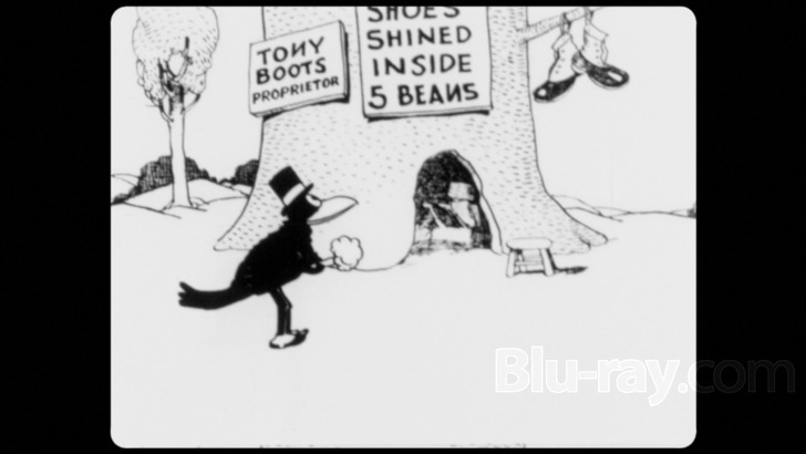 Most of the shorts on this disc have piano scores by Charlie Judkins offered in LPCM 2.0 (along with brief closing narration by Keith Scott). Fidelity is great and the scores are often quite jaunty and winning. As mentioned above, the "newest" film in the set has synchronized sound, as do the bonus shorts, all in LPCM 2.0 Mono and showing pretty significant age issues like hiss and occasional pops and crackles.