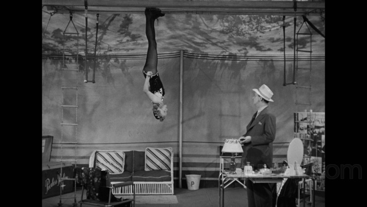 Following a similar formula to that of A Day At the Races and other Marx Bros. films from this era, At the Circus frequently entertains with a mixture of razor-sharp one-liners, broad slapstick, musical performances, and an over-the-top finale. It chugs along nicely -- even through a third act that pivots to the estate of Susanna Dukesbury as she's tricked by J. Cheever Loophole to book the circus at her swanky dinner party -- with detours into Professor Atom's tiny quarters, upside-down trickery with acrobat Peerless Pauline (Eve Arden), snooping in Goliath's room, and several near-deadly interactions with Gibraltar the gorilla (Charles Gemora in a suit). It's all fun and games for the most part, with At the Circus' only real dead stops being the lukewarm romance between Jeff Wilson and performer/girlfriend Julie Randall (Florence Rice), which grinds the film's momentum to a quicker halt with each new interaction.