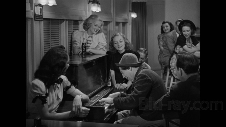 Not surprisingly, the DTS-HD 2.0 Master Audio mix holds up its end of the deal, presenting the film's original mono source in a split two-channel mix for wider playback that doesn't sacrifice sonic accuracy. Dialogue and sound effects are very clear, although the optional English (SDH) subtitles may help you to fully decipher some of the quickest one-liners and exchanges, while Franz Waxman's original score and the music numbers sound lively as well. No age-related wear-and-tear could be heard aside from trace amounts of hiss, which is actually good news for the film's overall dynamic range. In all respects, this is a quality presentation and equally impressive in its own right.