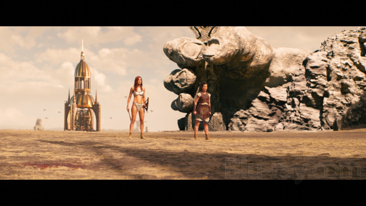 The 5.1 DTS-HD MA maintains clear dialogue exchanges throughout the listening event. Performance choices are easily understood, along with quieter, emotional moods. Scoring favors a thinner synth-y sound, which doesn't offer powerful support, but this could possibly be an inherent issue with the film. Dramatic emphasis reaches about as far as possible, and instrumentation is appreciable. Surrounds aren't especially active, but they do handle some musical moods, and occasional separation effects liven things up. Sound effects are distinct, exploring clanging metal and creature attacks. Low- end has moments of activity, favoring galloping horses and harder hits of violence.