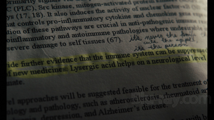The 5.1 DTS-HD MA mix handles dialogue exchanges with ideal clarity, offering balance with argumentative encounters and access to more hushed, emotional moments. Scoring supports with sharp instrumentation. Soundtrack selections preserve vocals. Surrounds do offer some musical moods, but the listening event is mostly frontal. Some atmospherics are appreciable, and spins of unreality contribute brief panning effects. Low-end perks up with heavier beats and stronger violent events. Sound effects are appreciable as the production favors aural points of pressure to reinforce burgeoning insanity.