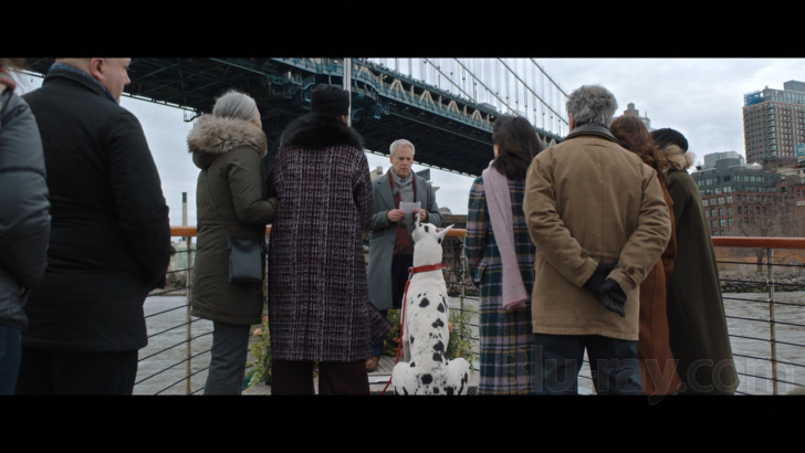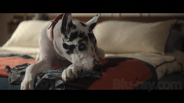 The 5.1 DTS-HD MA mix isn't a forceful listening experience, reflecting the gentle ways of "The Friend." Dialogue exchanges are defined, with clear emotionality and canine emphasis. Scoring delivers softer piano-based support, providing sharp instrumentation. Soundtrack selections are also secure, with defined vocals. Surround engagement is mild at best, handling some city atmospherics. Low-end isn't challenged.