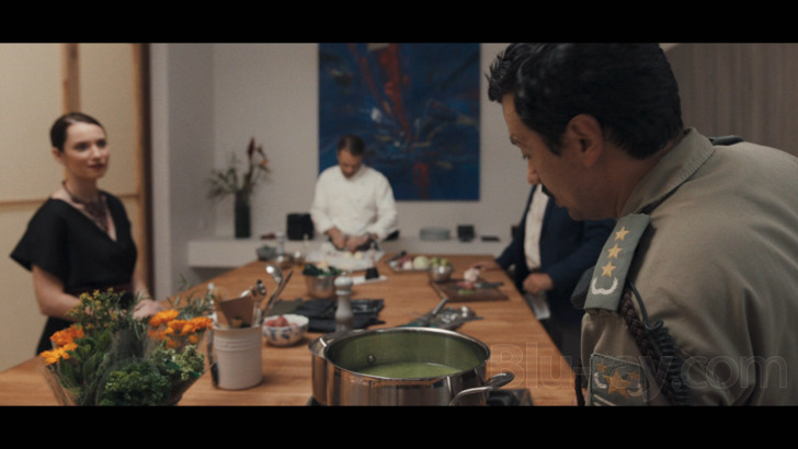 Despite the low budget, What You Wish For makes the most out of its ingredients and this pleasing 1080p transfer follows suit. There are only a handful of locations used here as 90% of the film takes place in the lavish house and its surrounding property, with basic research suggesting that everything was shot on location in Columbia in less than a month. DP Mateo Guzmán's workmanlike cinematography is efficient, frequently showing off the house's ultra-modern interiors, the lush surrounding area, and of course the deceptive and delicious foods that are prepared. On the technical side of things, this Blu-ray's picture impresses with solid fine detail, excellent color reproduction, deep black levels, and no flagrant encoding issues aside from extremely trace levels of macro blocking and posterization. On the whole, it's a visually well-crafted film and those who watch it on this format won't find much to complain about.