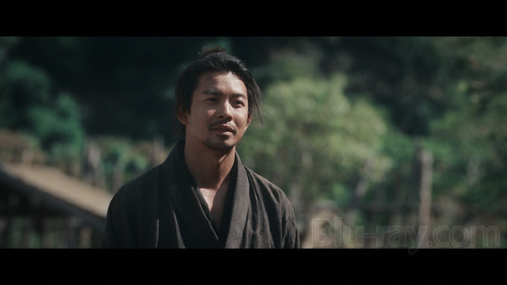 11 Rebels is presented on Blu-ray courtesy of Well Go USA with an AVC encoded 1080p transfer in 2.39:1. The closing credits roll disclose a couple of Sony cameras were used to capture imagery, and since both of the models have source capture resolutions of at times well above 4K, I'm assuming based on that and frankly just the actual look of things that this had a 4K DI, though as of the writing of this review, the IMDb doesn't really provide any technical information (as always with my reviews, if anyone has verifiable authoritative technical information, private message me and I'll happily update things here). While I'll cut to the chase and definitely recommend those with an interest in this title who have the appropriate equipment to opt for Well Go USA's standalone 11 Rebels 4K release, this is a really stunning looking presentation within the context of its resolution and standard dynamic range. Detail levels are excellent throughout the presentation (even if they're probably arguably improved in the 4K outing), and fine detail in particular is quite precise looking on any number of things ranging from the kind of woven burlap vest Masa wears in the early going, or even the repeated views of foliage. The palette is really gorgeously suffused throughout, and a number of scenes graded toward blues or greens are especially evocative, even if those tonal values are given more luster in the 4K version courtesy of HDR/ Dolby Vision. Digital grain is probably more subliminal at this decreased resolution when stacked up against the 4K presentation, but actually gives the film a nicely textured appearance in my estimation.