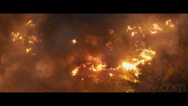 11 Rebels features a Dolby Atmos track in the original Japanese which is consistently immersive and provides both "traditional" surround activity in abundance while also regularly engaging the Atmos speakers, sometimes for seemingly "minor" effects like when a warrior lowers a staff dramatically in an early scene, leading to an overhead "whooshing" sound. The battle scenes (which are frequent) of course provide the most blistering sonic environments, and everything from the steel on steel sound of clashing swords to several rather impressive explosions elevate (in more ways than one) the sound design. The score is rather interesting (a Milanese orchestra gets a lot of space on the credits roll, with every instrument player commendably listed), combining western orchestrations and especially string sonorities with more of an ethnic touch courtesy of colorings from what sound like shakuhachis and kotos. Dialogue is rendered cleanly and clearly throughout. Optional English and French subtitles are available.