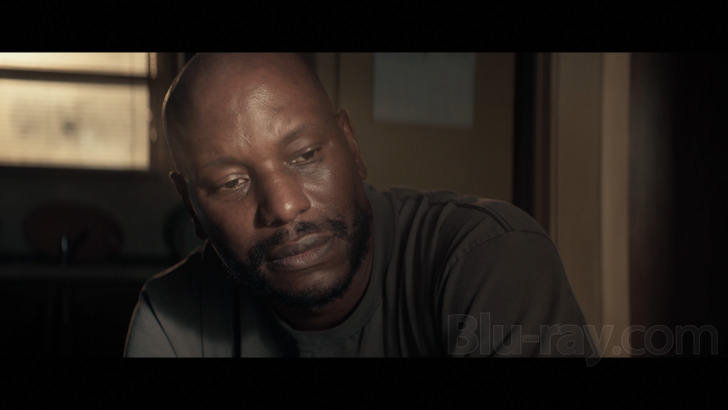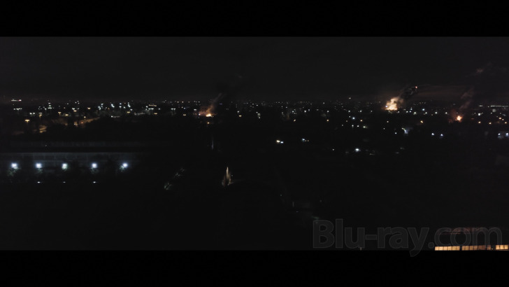 1992 is presented on Blu-ray courtesy of Lionsgate Films with an AVC encoded 1080p transfer in 2.39:1. I haven't been able to track down any authoritative information on the shoot, and as of the writing of this review the IMDb has no real technical specifications, but this is a nicely sharp and well detailed digital capture that I'm assuming had a 2K DI. As can probably be gleaned in some of the screenshots I've uploaded to accompany this review, there's a kind of interesting grading toward browns and beiges which give several scenes a somewhat unusual look for a perceived "thriller". In decently lit scenes, fine detail is typically excellent, though that said, a lot of the film takes place either at night or in the shadowy confines of the factory where Mercer works, and there are some passing deficits in shadow detail. An obviously low budget evidently didn't support very prolific "riot" scenes or convincing CGI of Los Angeles in flames.