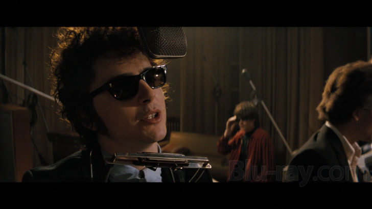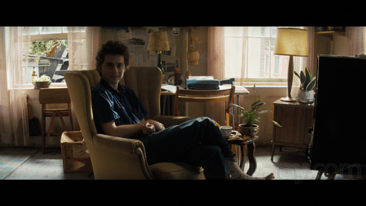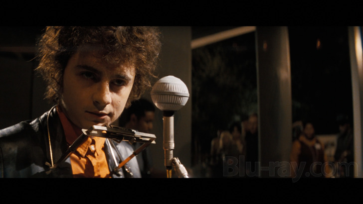 A Complete Unknown is presented on Blu-ray courtesy of Searchlight Pictures and Disney / Buena Vista with an AVC encoded 1080p transfer in 2.39:1. Though this was captured with Sony CineAlta cameras, it has been given a look much more reminiscent of film with a frequently pretty gritty looking digital grain field, though the addition of that may be just a bit more subliminal in this 1080 presentation than in the simultaneously released 4K UHD version. That said, as can often be the case, I'd recommend those interested with the appropriate equipment to opt for the 4K UHD release, as both detail levels and especially some nice palette highlights are arguably improved in that format. That said, those with "only" 1080 players are going to get a sumptuous presentation of their own. Detail levels are typically excellent throughout, aided by Mangold tending to frequently frame things in midrange or close up, and textures on all of the midcentury props and costumes is outstanding. I will say the Dolby Vision and HDR grades available on the 4K UHD disc probably help to improve shadow detail in some of the darkest moments, including some of the live performance scenes, like some dimly lit club material with Joan Baez. There are some subtle grading choices on display and some burnished yellow tones in particular are quite evocative.