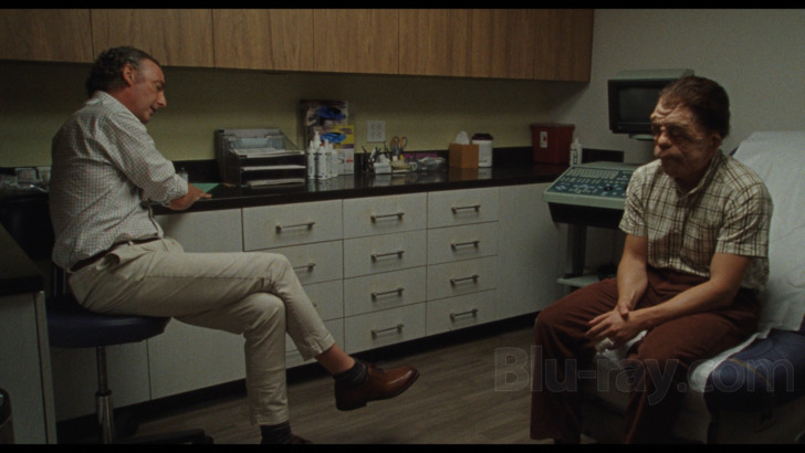 A Different Man features a Dolby Atmos track that is perfectly immersive as a "traditional" surround track, but which understandably given the film's narrative and context really doesn't offer a ton of opportunities for showy effects. Instead, there's clear engagement of the side and rear channels throughout for both ambient environmental sounds and some extremely eclectic source cues, as well as a really nice score by Umberto Smirelli, which has been given some lustrous orchestrations (especially for strings) by a cohort of what look like Italian arrangers. Dialogue is rendered cleanly and clearly throughout. Optional English and Spanish subtitles are available.