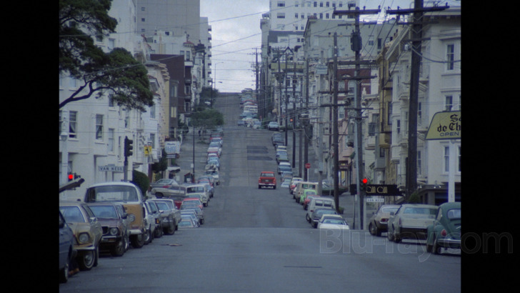 The AVC encoded image (1.37:1 aspect ratio) presentation for "A Formal Faucett" is "newly restored" from its 35mm original camera negative. The endeavor features many driving scenes around the San Francisco area, and dimension is wonderful here, showing off parts of the city and more suburban travels. Interiors also maintain depth, with a clear look at decorative additions from the era. Detail is excellent on the parade of bodies in the picture, with skin particulars distinct, along with textured clothing choices. Period hues are alert, with strong primaries and cooler street views, which also preserve vivid greenery. Clothing remains varied and sharp, and skin tones are natural. Delineation is satisfactory. Grain is fine and film-like. Source has some points of damage, with mild scratches and a few missing frames.