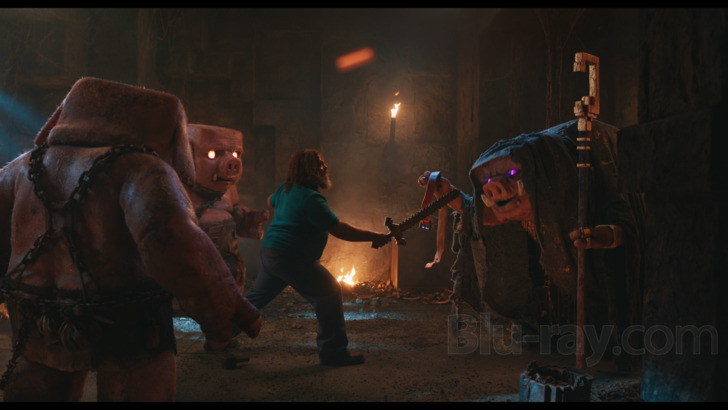 This one-disc release ships in matte-finish Steelbook packaging which, in my opinion, offers a solid upgrade over the relatively dull, cast-centric regular poster artwork but also isn't very true to what the film actually delivers. Regardless, it features a wrap-around array of non-human friends, enemies, and items from the Overworld and Nether set against a black background, with the familiar logo dead-center on the front cover. Inside, there's a herd of menacing Creepers and both discs sit on overlapping hubs on the right. Maybe not for all tastes, but I like this one quite a bit.