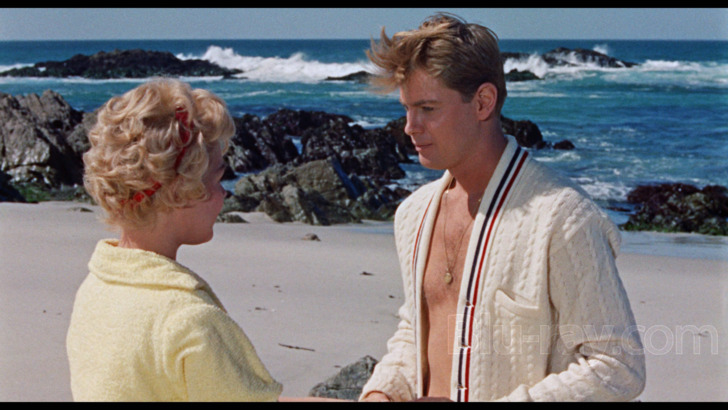 As usual, the DTS-HD 2.0 Master Audio mix isn't far behind and offers loads of sonic support, splitting A Summer Place's original mono audio into a two-channel track for wider playback while remaining 100% authentic to its source. Dialogue and background details -- including wind, water, and other seaside ambiance -- is delegated nicely and never fights for attention, while Max Steiner's original score also comes through cleanly and clearly with a dynamic range right in line with expectations for this era of filmmaking. As usual, no age related damage could be heard along the way, only trace amounts of hiss which are the result of no extraneous amounts of noise reduction applied.
