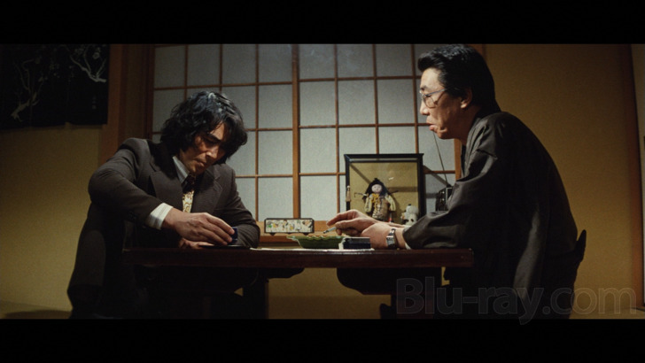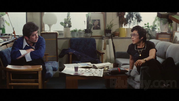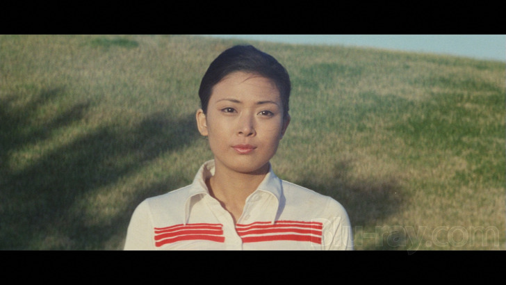 A Tale of Sorrow and Sadness was transferred in high definition by the Shochiku Corporation. The film was supplied to Radiance Films as a high definition digital file and is presented in the original aspect ratio.I've been on record as not always being completely pleased by the look of some these "pre delivered" masters various boutique labels like Radiance have offered over the years, but this is a nice exception, one that is marked by a really solid accounting of Suzuki's completely hyperbolic use of color, something Jasper Sharp overtly singles out in his insert booklet essay as a prime reason this is a "Suzuki film". Primaries are especially bold and vivid, with some of the blues and reds in particular looking especially evocative. Detail levels are generally excellent throughout, though Suzuki does tend to utilized midrange framings quite a bit throughout the film, something that at least allows him to highlight some "groovy" midcentury modern production design, but which may slightly tamper fine detail levels at times. Grain resolves naturally.