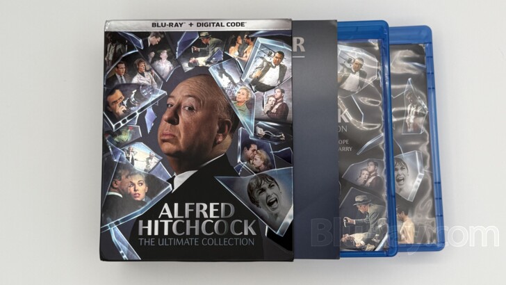 Collecting some of the legendary director's best films in one release, the 'Alfred Hitchcock: The Ultimate Collection' arrives on Blu-ray disc courtesy of Universal. The fifteen classic films that make up this release are some of his most beloved works, and include: 'Saboteur', 'Shadow of a Doubt', 'Rope', 'Rear Window', 'The Trouble With Harry', 'The Man Who Knew Too Much', 'Vertigo', 'North by Northwest', 'Psycho', 'The Birds', 'Marnie', 'Torn Curtain', 'Topaz', 'Frenzy', and 'Family Plot'. The discs that make up this release are identical to the previously issued Blu-ray discs, and each disc is housed on its own hub in the multi-paged Amray-style cases. A 64-page perfect bound book is also included. All of these contents are housed in an embossed, paperboard slipbox that features foil highlights. A Digital Code redeemable via Movies Anywhere is also included.