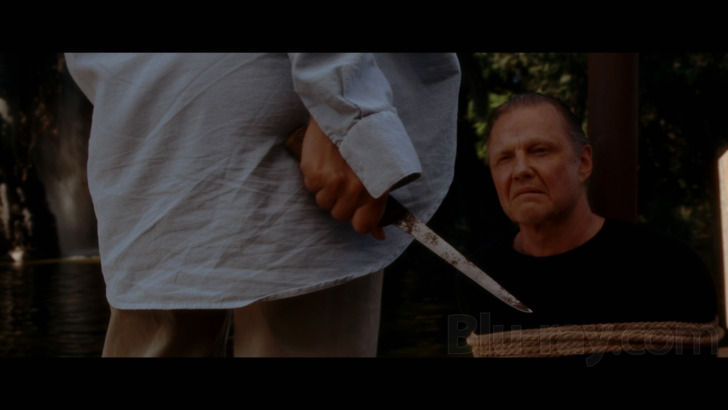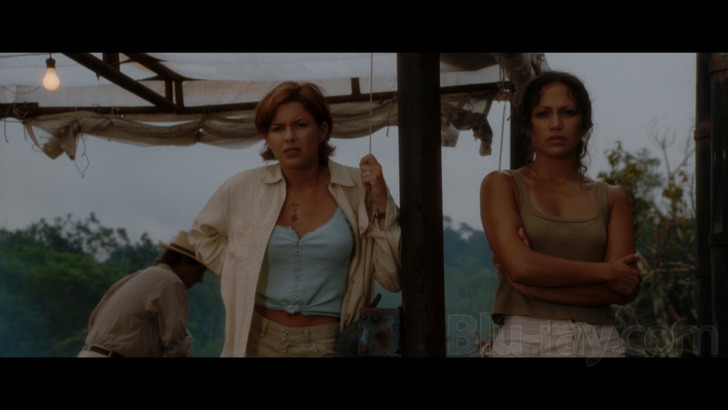 The notoriously rugged jungle environment of Anaconda, which was largely shot on-location in Brazil, has proven tough to handle on home video, and previous Blu-ray editions linked above all scored low marks for lackluster video quality. As Sony's new remaster proves, though, all it needed was a little more attention: it's reportedly sourced from a recent 4K scan of the original 35mm camera negative and enjoys the benefits of full 2160p as well as HDR10 and Dolby Vision support, the latter of which are used tastefully. It's still not exactly a pretty picture at times, though: the color palette is overwhelmingly earth-toned and wavering light levels don't always lead to crisp textures and fine detail even in semi-favorable lighting conditions. But what was originally captured by cinematographer Bill Butler and his team is replicated faithfully here, as are the practical effects and notoriously hit-and-miss CGI sequences that feature noticeable baked-in ghosting, blurring, and other distracting side effects. Grain levels likewise waver but they're uniformly well-encoded on this full triple-layered disc, which runs at a high and supportive bit rate from start to finish and features no real signs of posterization, banding, or macro blocking. All things considered (and with quite a challenge in front of them), Sony's team has delivered a solid-looking remaster that will likely never look better on home video.