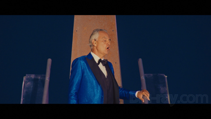 Andrea Bocelli The Celebration offers really sumptuous sounding DTS-HD Master Audio 5.1 and LPCM 2.0 options. The surround track certainly offers a more lifelike accounting of the outdoor setting, with a more spacious all around ambience and generally quite effective engagement of the side and rear channels for both orchestral accompaniment as well as crowd noises and occasional ambient environmental effects. There are really no major audio problems considering the outdoor venue, and voices all sound fantastic.