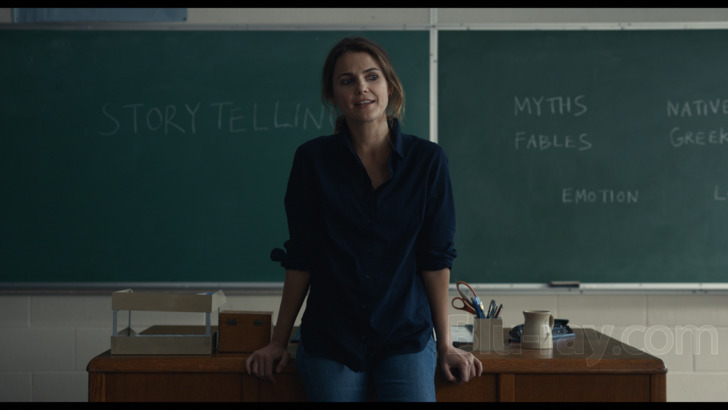 Antlers is presented on Blu-ray courtesy of 20th Century Films' Searchlight imprint and Disney / Buena Vista with an AVC encoded 1080p transfer in 1.85:1. This is another high definition presentation which confirms my kind of inherent preference for non-Arri captures, which in this case according to the IMDb also was granted a 4K DI (the IMDb lists the Sony CineAlta Venice as the camera but has Redcode listed as the source format). The results are really beautifully detailed, though as can probably be gleaned by many of the screenshots I've uploaded to accompany this review, the film is appropriately drenched in the misty greens and grays that are so prevalent in the Pacific Northwest (whether or not these curmudgeonly filmmakers decided not to shoot in Oregon, where the film supposedly takes place). While outdoor material is pretty consistently drab and in those aforementioned color categories. a lot of the interior material can be almost sepia toned, with an emphasis on orange tinted yellows and browns. The "reveals" of the wendigo are brief but quite startling, and even CGI detail levels tend to be surprisingly sharp, especially considering the lack of light (probably intentionally so, to up the angst factor).