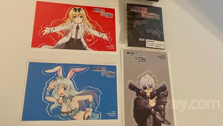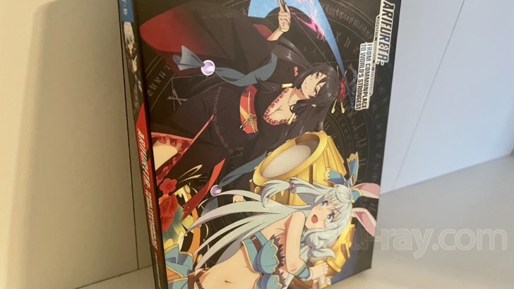 The limited edition of Arifureta: From Commonplace to World's Strongest comes with a deluxe art box holding the standard-edition package within and some extra goodies exclusive to this version. The set includes a booklet, six art cards, enamel pins, and a set of collectible stickers. Fans of limited edition versions will find the set to be superior to the standard-edition packaging. The bonus pack ins are decidedly nice (especially the art cards).