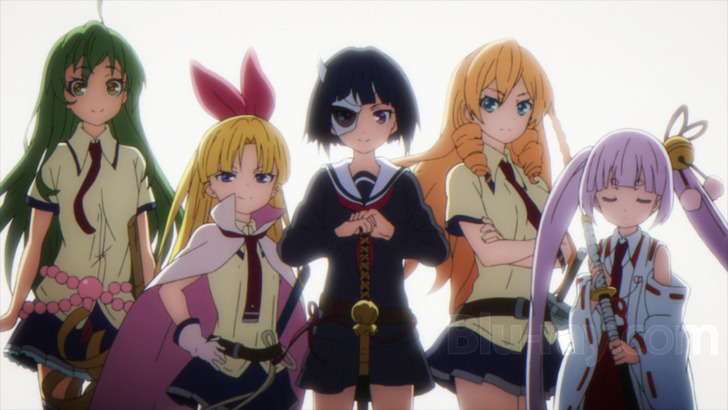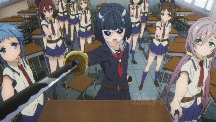 The Supreme Five Swords are a nice group of girl fighters with incredible skills and the group consists of – Rin Onigawara (Yūki Takada), Mary Kikakujō (Sayaka Kitahara), Satori Tamaba (Nozomi Nishida), Warabi Hanasaka (Rina Hidaka), and Tsukuyo Inaba (Natsumi Hioka). The girls created an agenda involving boys having to dress up like girls – but Fudō might have other ideas. Another transfer student also enters the school: Kirukiru Amō (Eriko Matsui). A school brawl has become a reality as the school enters an era that resembles a battle of the sexes.