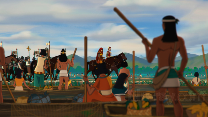 Despite the fact that Clash of Empires' original language is in fact Spanish (more on that in the next paragraph), as evidenced by the mouth movements and opening/closing credits, WB makes English the default option with a lossless DTS-HD 5.1 Master Audio dub. It's predictably forceful and nuanced with a strong dynamic that really sells the action even when some of the stiffer animation falls a little short. The dubbing voices are mostly unremarkable but decently emotive, while music and background effects are balanced well enough to be easily identified whether it's a chaotic or more intimate or personal scene. If you're absolutely allergic to reading subtitles, it'll get the job done.