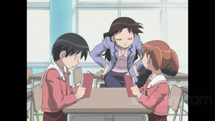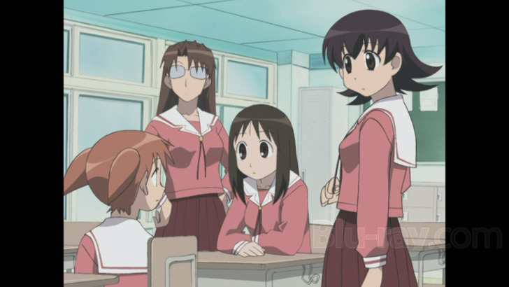 Released on Blu-ray by Sentai Filmworks, Azumanga Daioh is presented in 1080i MPEG-4 AVC encoded high-definition in the original television broadcast aspect ratio of 1.33:1 full frame. The series has been upconverted from standard definition. The series colors are well reproduced on the release. The series line art is well done, too. Unfortunately, the series does not have a native high-definition release and animation is limited in resolution due to the time of the production.