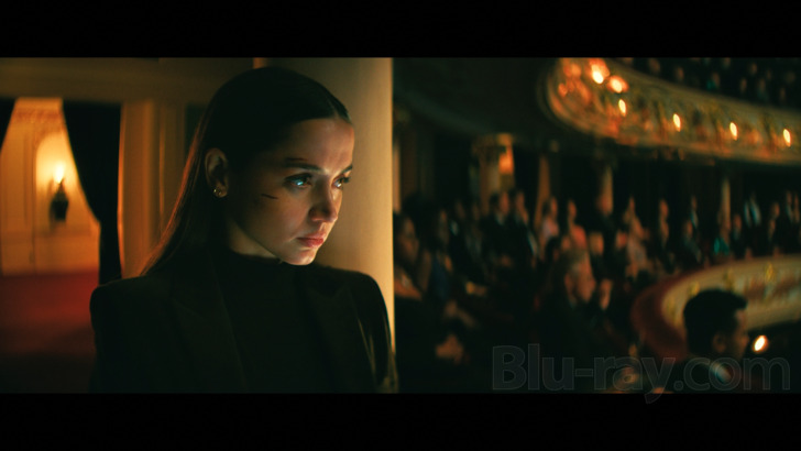 Ballerina is presented on Blu-ray courtesy of Lionsgate Films with an AVC encoded 1080p transfer in 2.39:1. The IMDb is listing Arri models, but unless I'm completely blind, I saw at least one camera in the making of supplement which seemed to have a big RED emblazoned on the side, but one way or the other, a 4K DI is also specified on IMDb. While those interested in this title should probably opt for Lionsgate's 4K release if they have the appropriate equipment, this is another fantastic looking presentation in the John Wick franchise. The film commendably doesn't completely mimic the tendency toward purples and teals that have adorned previous films in the series. There are definitely passing moments that utilized purples in particular (the nightclub scene is just one notable example), but this outing tends to have a more "normal" looking palette a lot of the time, and it is really gorgeously suffused throughout this 1080 presentation (though the 4K disc's HDR / Dolby Vision grades improve on that luster). Detail levels are consistently impressive, though the film has its fair share of pretty dimly lit material where shadow detail can occasionally be slightly lacking. Fine detail in close-ups is typically excellent. I wasn't especially fond of the way the digital grain looked at times, but it's never overwhelmingly inorganic looking.