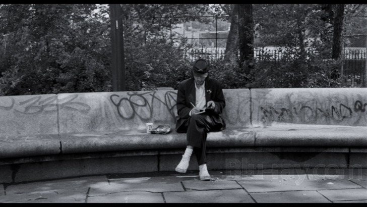 Basquiat is presented in the aspect ratio of 1.85:1. Supervised and approved by director Julian Schnabel, the new black and white 4K restoration was created from the 35 mm original camera negative. The 5.1 surround soundtrack was remastered from the original digital audio master files. The feature is presented in Dolby Vision HDR (high dynamic range) on the 4K Ultra HD disc and high definition SDR (standard dynbamic range) on the Blu-ray.This is a hugely appealing looking transfer, though of course I'm sure there will be those who wished Criterion and/or Schnabel had included a 4K color version as well. Dolby Vision / HDR really help to emphasize contrast, and blacks are impressively deep throughout, without really any attendant crush. Detail levels may not be hugely improved from the already excellent 1080 edition, but some close-ups in particular can show increased fine detail in things like flyaway hairs or even facial pores. As with the color version, there are a few passing moments where clarity degrades slightly and grain can show a bit of an uptick. Interestingly, Schnabel includes a very brief post credits color coda, which looks great and will probably only make fans wish all the more for a 4K color version.