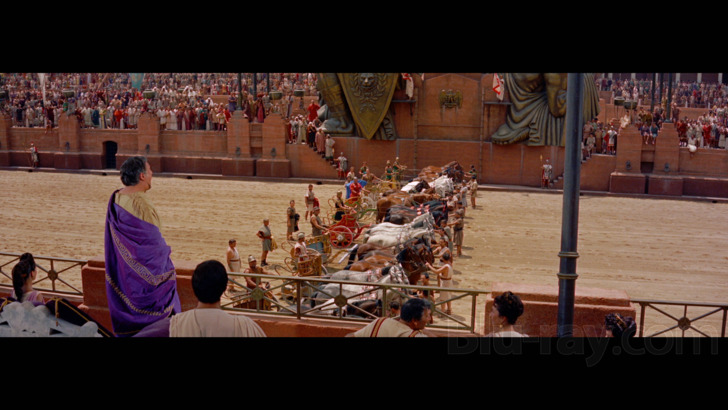 Warner Bros.' earlier Blu-ray presentations of of Ben-Hur (identical on all three versions linked above) were and still are exceptional in their own right and sourced from a then-new 8K scan of the original 65mm camera negative, but this outstanding new 2160p/HDR10/Dolby Vision transfer was apparently culled from a more recent 8K scan of that source material using better technology. Whatever the process used here, the end result is nothing short of a revelation: it's the kind of picture quality that makes you wish you had an even larger TV or even a projector to show it off, as the level of fine detail and color depth here is easily among the best I've ever seen on home video, rivaling other prestige 4K titles like The Sound of Music, High Society, and The Searchers. As usual, the HDR layer provides subtle support in terms of color precision, shadow detail, and highlights, staying true to the film's appearance while ensuring that every aspect is as close to perfect as possible. Ben-Hur's visuals won Academy Awards in several categories including art direction / set decoration (AKA production design), color cinematography, costume design, and special effects, and each of these can now be appreciated to the fullest extent. And as usual, the film runs at a very high and supportive bit rate from start to finish, given that it gets a total of 166GB of available disc space here -- that's more than double the Blu-ray, and viewers can and will notice the difference regardless of screen size. In short, it's one of the easiest 5/5 ratings I've ever awarded, and this release is an early front-runner for the best looking title of the year.