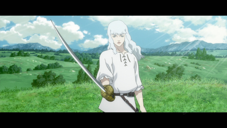 Television broadcast version of the Berserk: The Golden Age Arc 2010s movies. All he's ever trusted is his own sword. No friends, no family, and no place to call home--the solitary swordsman Guts has been wandering as a mercenary through lands ravaged by the Hundred-Year War. Capably wielding a sword longer than his own height, Guts defeats mighty foes with ease. The one who sets his sights on Guts is Griffith, leader of the Band of the Hawk mercenaries. With ambition buried deep down, and far more leadership ability than his beauty would suggest, Griffith gets the better of Guts in a duel, thus drawing him into the Band of the Hawk. Over the course of numerous hard-fought battles, the comrades all form bonds of trust with one another. The ties between Griffith and Guts in particular grow to become something special. Eventually the Band of the Hawk joins the ranks of the kingdom of Midland's regular army, but this is nothing more than the first step in Griffith's grand designs. Meanwhile, Guts begins to harbor doubts about a life spent just wielding his sword as a part of Griffith's dream. But little does he suspect the dreadful fate that endless dream has bestowed upon them both.