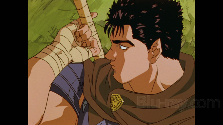 Guts (Nobutoshi Hayashi) is one of the toughest and most determined warriors. Guts is known to others as The Black Swordsman. Guts has earned a reputation as a tough fighter wielding an epic blade even more impressive than any ordinary sword. Guts takes on demons and ghosts – with demonic forces attempting to stop Guts. The demons might rule the land but Guts is a brave warrior. Guts also has memories of his past adventures with the Band of the Hawk and leader Griffith (Toshiyuki Morikawa).