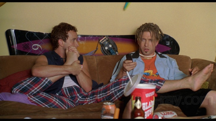 Bio-Dome's DTS-HD Master Audio 2.0 lossless soundtrack isn't a great listen. Opening music is aggressive but muddy, harsh, and absent much instrumental or vocal clarity. It's a mishmash of somewhat indistinct elements that make the opening title sequence a headache rather than a pleasure. Music tightens up a bit the rest of the way, with modestly improved detail and raw clarity, but an underlying absence of pinpoint clarity remains. Likewise, heavier effects like exploding fireworks fall largely flat and without much sonic definition. A little bit of side-to-side movement is evident with a few effects, but the film is largely a dialogue-driven picture that lacks much opportunity beyond music to extend itself. Dialogue fails to find good center imaging, instead remaining as much on the sides as in the middle. Dialogue clarity suffices.