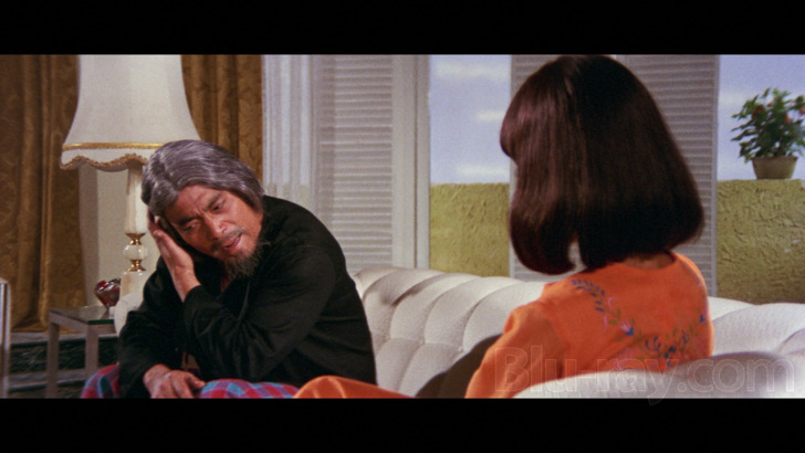 All sixteen films in this boxset are presented in their original aspect ratios (all 2.35:1 except for Bewitched, Hex After Hex and Seeding of a Ghost in 1.85:1) with their original Mandarin and/or Cantonese and/or English monaural soundtracks. Every effort has been made to present these films in their original and complete versions using the best materials available.Black Magic can't quite get past its low budget and so this doesn't have the luxe production values of a lot the Shaw Brothers historical films in particular. That said, the palette is quite appealing here, and in fact I'd say color timing and suffusion are superior here than in the sequel, which can look a little wan and skewed toward pink / peach tones. Here, though, the palette is really warm a lot of the time, with natural looking flesh tones and some appealing pastels in some of the production design. Detail levels are generally very good, with possible exceptions like some of the opticals in the opening vignette for example. Grain resolves without any issues. There are some almost motion sickness inducing anamorphic warpings that turn up, including in a couple of pans of urban environments at around the 10 minute mark.