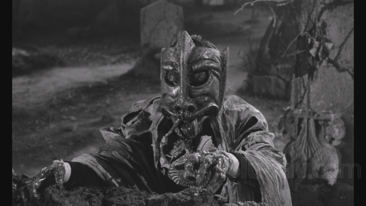 Scream has supplied a DTS-HD Master Audio Dual Mono mix (1783 kbps, 24-bit) that's presented in English. (The audio bitrate is identical on both discs.) I compared this track with the English tracks on the HBO LD and Arrow BD. The digitally encoded PCM mono track on the HBO disc is good overall. It is mixed a bit low, though I did find all dialogue discernible. I could hear spoken words better when Gorobec is conversing with the priest (Antonio Pierfederici) in the graveyard than in other places in the film. The sound on the LD has at a least few moments where it crackles. The English LPCM mono (1536 kbps, 16-bit) on the Arrow represented a noticeable improvement. It's louder and more distinct. But it exhibits some distortion in the upper ranges. I could hear occasional humming. The mono track on the Scream discs is superior to both. It is clear, perfectly audible, and finely balanced. It shows some high-dynamic range when delivering Roberto Nicolosi's score, which brings in brass, woodwinds, eerie strings, the xylophone, bells, and drums that sound like a gong. Scream's mono has no bad hiss, scratches, or dropouts. I don't think it can sound any better than it does here.
