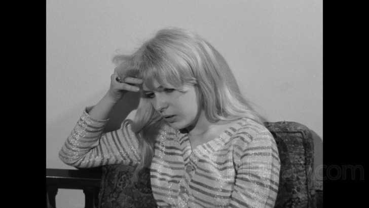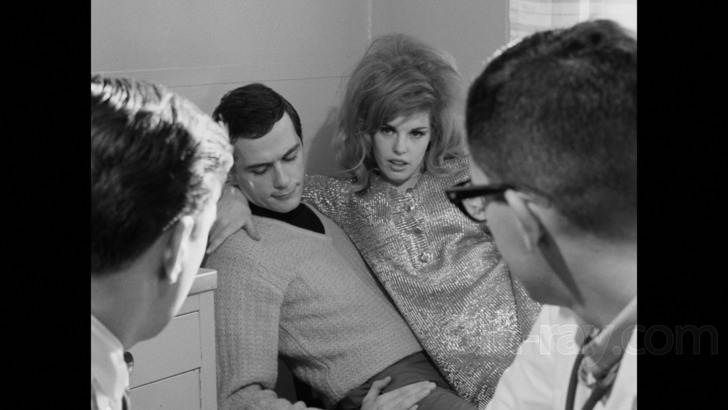The AVC encoded image (1.33:1 aspect ratio) presentation is listed as "newly restored in 4K from the original 35mm camera negative." Clarity is generally excellent on this release, though "Blonde on a Bum Trip" isn't exactly a visual feast. Still, detail explores skin particulars and stiff hair, and clothing retains fibrousness as style from the era is displayed. Room interiors remain open for inspection, including a trip to a nightclub. Exteriors are limited, but maintain depth. Cinematography stays fresh, with sharp whites and deep blacks. Source is in decent condition, with a few points of damage and some general wear and tear.