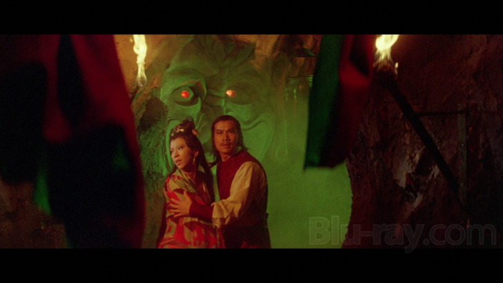All sixteen films in this boxset are presented in their original aspect ratios (all 2.35:1 except for Bewitched, Hex After Hex and Seeding of a Ghost in 1.85:1) with their original Mandarin and/or Cantonese and/or English monaural soundtracks. Every effort has been made to present these films in their original and complete versions using the best materials available.Bloody Parrot has one of the less appealing transfers in this set, with much grittier looking grain a lot of the time, and a lack of clarity that actually includes several out of focus moments (see screenshot 9 for an example). Generally speaking, while perfectly watchable and in fact quite decent looking a lot of the time in terms of palette suffusion and detail levels, this presentation has a noticeably fuzzier and blurrier overall appearance. There are some of the same kinds of anamorphic squeezes as show up in several of the other transfers, and while they are typically at the edges of the frame, on a couple of occasions they seem to afflict things more toward the center.