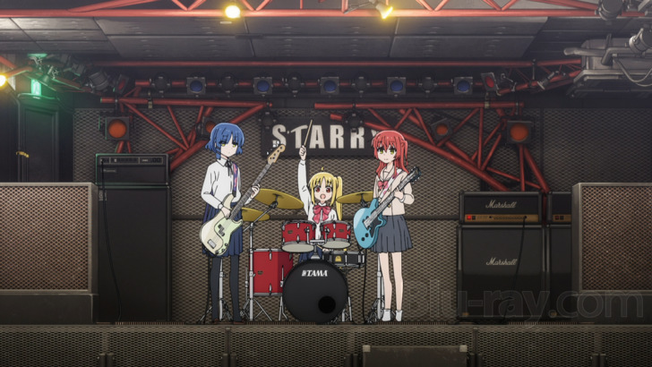 Released on Blu-ray by Crunchyroll, Bocchi the Rock! is presented in 1080p MPEG-4 AVC encoded high-definition in the original television broadcast aspect ratio of 1.78:1 widescreen. The release has a nice high-definition presentation. The high-definition visuals on the release look exceptional. The video quality is superb. The animation is crisp, colorful, and engaging. The background animation looks impressive here and the line art is detailed and a lot more immersive than expected. The style is engaging and creative and the encoding capably showcases the work of the animators.