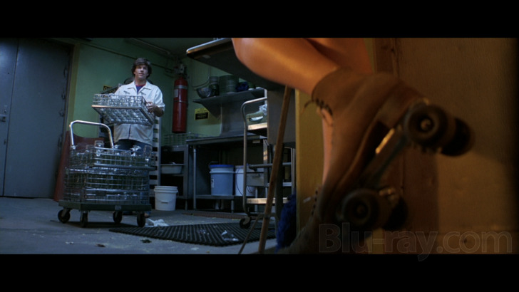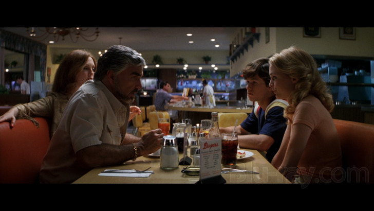 This one-disc set ships in a matte-finish Steelbook with spot gloss on the front cover image. As mentioned earlier, it's based on a Mondo poster design by the artist "Rockin' Jelly Bean" but now surrounded by a jet-black border. Say what you will about the questionable likenesses, but it's still a pretty striking image and I'm glad that WB actually approved something like this. The back features Dirk Diggler (Mark Wahlberg) and Jack Horner (Burt Reynolds) in conversation, while the interior spread offers a collage of "vintage" photos with characters and moments from the film. Overall, it's a fun but probably equally divisive effort that at least had the good sense to use the old title font on the spine.