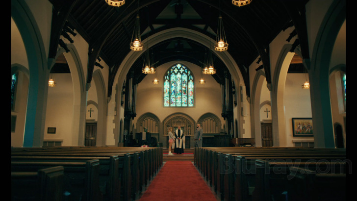 What follows, of course, is Paul's return to the scene of the crime months later after he escapes from an institution with fellow patient Penny Pascal (Alba Baptista). Reuniting with his old pal J.H. (Patrick Cox), an oversized man with one bad eye, Paul and company easily bypass Sofia's security and set the stage for what will hopefully be his actual marriage to her at a venue yet to be disclosed. Sofia's got Bell and Rhodes for protection, sort of... but since Borderline begins at the ending as seen above, it's pretty obvious that Paul at least partially succeeds in his dramatic quest for love.