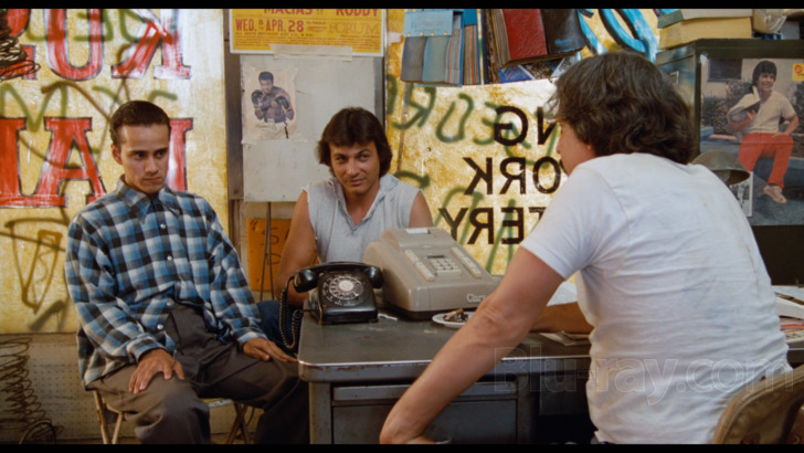 I've had a closer eye on Warner Archive Blu-rays in recent times due to atypical encoding issues on a handful of titles, but without question Boulevard Nights is one of their best-looking discs in recent memory. Built from a new 4K scan of the original camera negative and treated to a round of the boutique label's careful manual cleanup, the result is a very authentic and film-like presentation that feels right in line for a low-budget film from this era. Grain wavers depending on light levels and other fundamental factors, with only a handful of night sequences feeling like they're been subjected to any sort of noise reduction (probably necessary, in this case), with other scenes depicting thicker levels of grain that aren't intrusive but certainly more visible in motion. For the most part, though, it's top-tier work from star to finish with excellent natural color reproduction that shows off the distinct hues of various outfits, graffiti, period-specific signage, and of course the decorative paint seen on countless classic cars. Boulevard Nights looks quite striking at times and this Blu-ray presentation seems to support it about as well as possible, with large portions of the film holding steady in the mid to high 30Mbps range with no obvious digital deficiencies on display. Excellent work indeed.