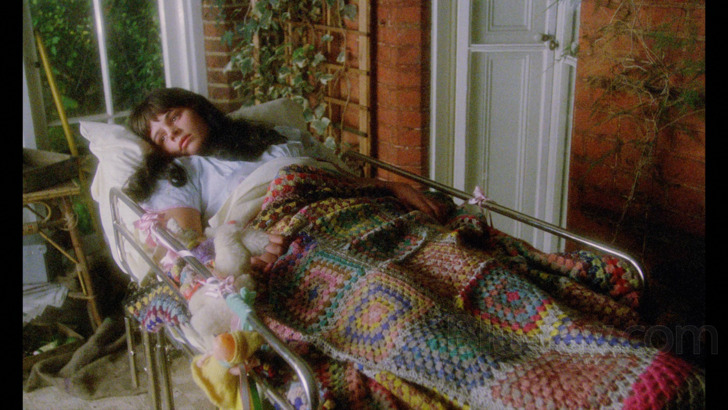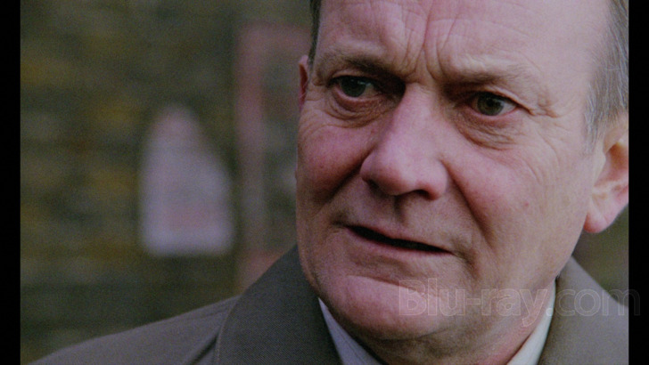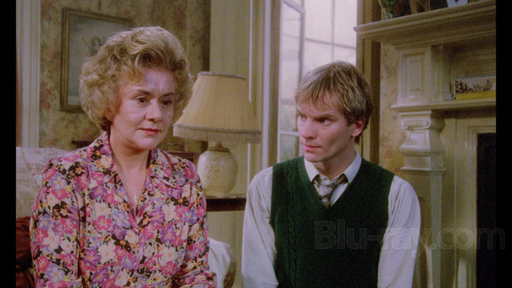 "Brimstone & Treacle" is listed as "scanned and restored in 4K from its original camera negative and graded under the supervision of director Richard Loncraine and cinematographer Peter Hannan." For its UHD debut, Vinegar Syndrome provides an introductory card explaining that previous home video releases of the movie diluted its original "stylized" look, with this release restoring "deep yellow and green tones" originally intended for the endeavor. Indeed, "Brimstone & Treacle" emerges as a wildly colorful offering, and is handled well during the viewing experience, which offers a brighter feel for hues. Primaries are appealing, and moodier scenes around the household register with power, including religious and dreamlike visuals. Skin tones are natural. Greenery and stony English living is distinct. Detail is excellent, getting into skin particulars on the cast and their age differences. Costuming is textured, along with household decoration, which remains open for inspection. Exteriors are limited, but maintain depth. Interiors retain ideal dimension. Blacks are deep, securing evening activity and shadow play. Highlights are tasteful. Grain is nicely resolved, film-like throughout. Source is in good shape, with brief scratches and some debris.