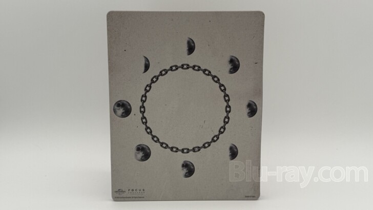around which eight phases of the moon are positioned at regular intervals. In the lower left corner, Universal's logo sits next to that of Focus Features,