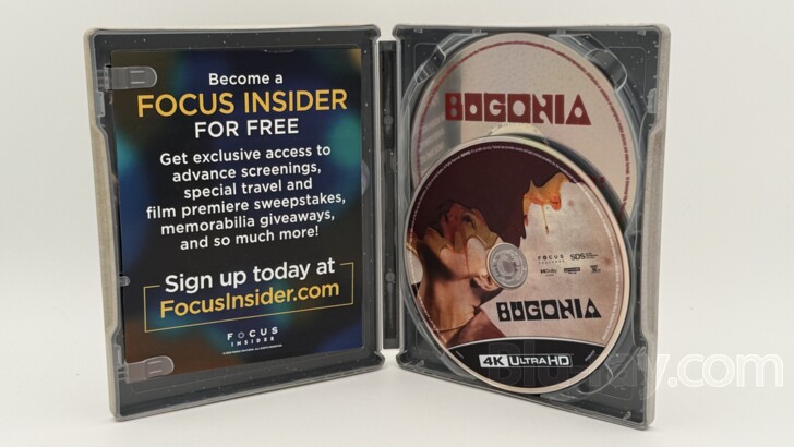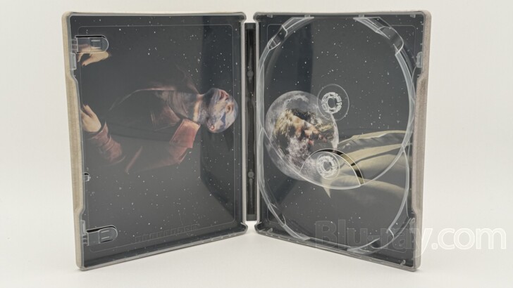 Opening the SteelBook, the tabs on the left secure the Digital Copy. On the right side, the 4K UHD disc and the Blu-ray disc, each containing the same