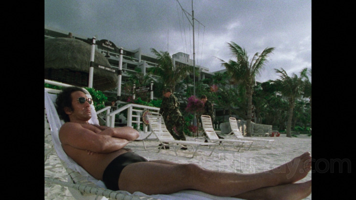 The films in this collection represent a period of film production in Japan in the late 1980s and early 1990s where films were made by the Toei Company specifically for home video. Beginning with Crime Hunter: Bullets of Rage, these "V-Cinema" titles were produced quickly and inexpensively, but afforded filmmakers significant freedom when it came to censorship, resulting in riskier content than what had been produced for cinema distribution.This presentation has a somewhat jaundiced color timing that can add slight hints of yellow at times, something that can make waters look a bit on the green side rather than blue. That niggling qualm aside, the palette actually is rather vibrant here, at least in the more brightly lit outdoor moments. Detail levels may frankly never be exceptional, but they're at least decent and often more than that in close-ups. There's a somewhat fuzzy look to this production that I sense is due at least in part to some of the location shooting. The fuzzy quality is probably only exacerbated or at least reinforced by a pretty heavy grain field. As with many of the other films in this set, minor age related wear and tear can be spotted.