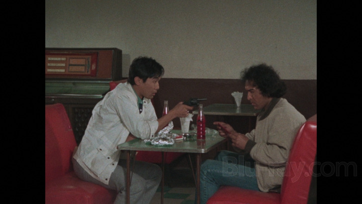Burning Dog features LPCM 2.0 audio in the original Japanese. Some nice outdoor location work, including some seaside, allows for good use of ambient environmental sounds. Despite a plot that would seem to hint at "montage ready" moments like a heist being planned, Burning Dog is actually another talk fest, with lots of "two hander" dialogue scenes between pairs of people. All spoken material is delivered cleanly and clearly. Optional English subtitles are available.