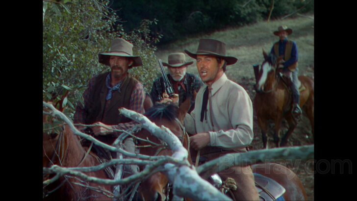 The release is sourced from an older master, supplied by Universal. I would describe the overall quality of this master as practically identical to the one that the major supplied for Kino Lorber's release of Bend of the River in 2019. It is not plagued by any compromising corrections, and the majority of the visuals it produces have a fine, even good organic appearance. However, it is also a dated organic appearance, with obvious registration issues, most of which impact clarity and depth. Indeed, if properly restored in 4K, or even 2K, California can have a pretty striking Technicolor appearance, boasting sharp visuals with rich, beautifully balanced primaries and supporting nuances. The current presentation has some mostly good primaries, and a small range of acceptable nuances, but they are mixed up with the previously mentioned registration issues, which tend to exacerbate other limitations of the current master. Image stability is very good. Also, the entire film is surprisingly healthy. (Note: This is a Region-A "locked" Blu-ray release. Therefore, you must have a native Region-A or Region-Free player in order to access its content).