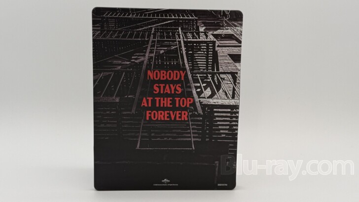 corner. The SteelBook's spine is black and the film's title is centered and printed in white block letters. Universal's logo is found at the bottom.