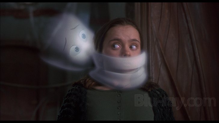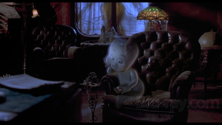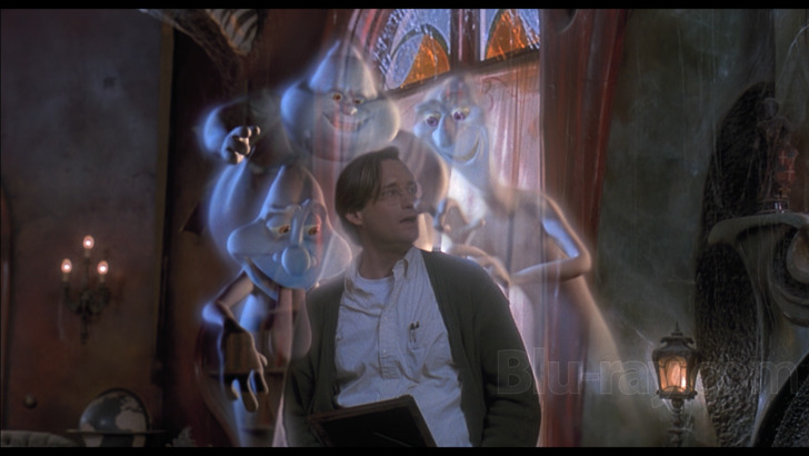 Casper's Dolby Atmos track is a delightful upgrade, offering viewers a more immersive viewing experience that is equally capable of dealing with subtle atmospherics as it is with more dramatic and boisterous sound elements. It's well-balanced and lively. Right from the beginning, as two brave young interlopers make their way into Whipstaff Manor to take a Polaroid as evidence of their heroics, Casper's disembodied voice moves spookily but fluidly through the soundfield. This holds true for the duration of the film, as ghosts and other elements swirl from fronts, to sides, to rears, and back again. Bass is more than sufficient to support slamming doors and falling bodies, and grander sounds as well, such as the wrecking ball Eric Idle errantly deploys in the early goings of the film, and the booming gunshot as the trio of ghosts shoot "skeet". Surrounds are used to craft a realist echo in the dilapidated home's most cavernous rooms, and support ambient music and underscoring as well. Whether at lower levels or when allowed to dominate, music is precisely rendered. Dialog is normally housed front-and-center and is properly prioritized. Directionality is accurate. It's an engaging and frequently impressive track.