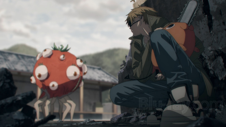 Released on Blu-ray by VIZ Media, Chainsaw Man Season 1 Vol 1 is presented in 1080p MPEG-4 AVC encoded high-definition in the original television broadcast aspect ratio of 1.78:1 widescreen. The presentation is crisp and colorful on the release. The animation is robust and pleasing. There is an impressive quality to the animation reproduction throughout and fans will appreciate the vibrant aesthetic and attention to detail. The action scenes are well encoded and provide crisp imagery that provides these sequences at their best.