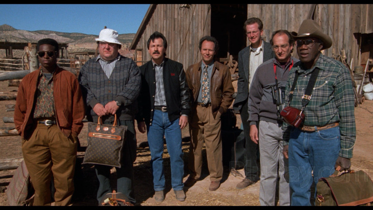 City Slickers features LPCM 2.0 and DTS-HD Master Audio 5.1 options. The audio presentations here probably unsurprisingly mimic the previously released discs' offerings, based on Michael's and Brian's descriptions. The surround track may frankly not be at consistently bombastic levels in terms of surround activity, but both Marc Shaiman's enjoyable score and effects like those used in the stampede sequence definitely provide engagement of the side and rear channels. Occasional relatively quieter outdoor material can also feature discrete channelization of ambient environmental effects. Dialogue is rendered cleanly and clearly throughout. Optional English subtitles are available.