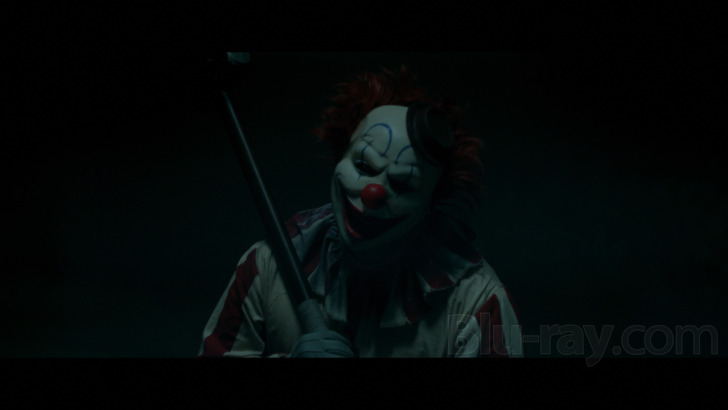 The 5.1 DTS-HD MA mix delivers an immersive understanding of "Clown in a Cornfield." Sound effects are active, creating a few distinct environments as the action heads into rural areas, offering crunchy corn field movement. Violence also adds intensity, with surrounds delivering separation effects to aid suspense, providing a more circular understanding of peril. Dialogue exchanges are crisp, supporting performance choices and heated encounters. Scoring handles with defined instrumentation, also examining some presence in the surrounds. Soundtrack selections provide clear vocals. Low-end remains alert with harder hits of violence, bass stings, and musical beats.